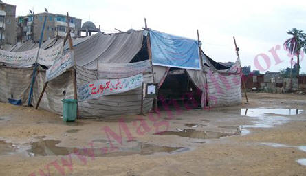 الأقباط يصلون فى خيمة بسبب تعصب محافظ المنيا ورفضه إصدار ترخيص ببناء كنيسة بدلاً من التى هدمت الأمطار تحطم الخيمة المقامة بارض مطرانية مغاغة والعدوة الجديدة .. والانبا اغاثون يتساءل الى متى لا تُحل هذه المشكلة ونأخذ التراخيض لبناء كنيسة... *************************** أسقف مغاغة والعدوة فى حوار لصوت المسيحى الحر ثلاثة آلاف قبطى بمغاغة يصلون قداس الغطاس بالعراء فى درجة حرارة 15 مئوية ووسط أمطار شديدة **************************************** الطقس السيئ يتسبب فى تجدد أزمة مطرانية مغاغة بالمنيا والأنبا أغاثون: كيف نصلى فى «الوحل»؟! |