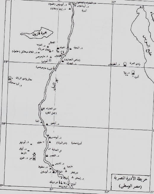 موسوعة تاريخ أقباط مصر - coptic history بقلم عزت اندراوس خريطة الأديرة القبطية بوادى النيل منطقة مصر الوسطى  |