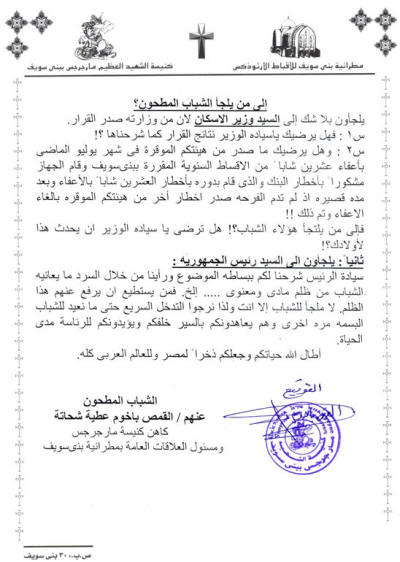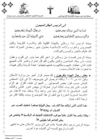 "إبراشية بنى سويف" تنتقد قرار المغربى بدهان حوائط "ابنى بيتك"