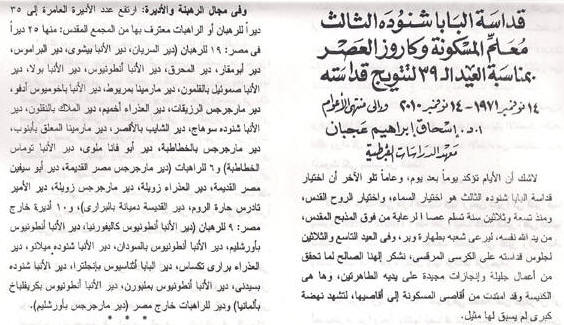 موسوعة تاريخ أقباط مصر - coptic history بقلم عزت اندراوس أعمال قداسة البابا شنودة حتى عيد تتويجه الـ 39 |