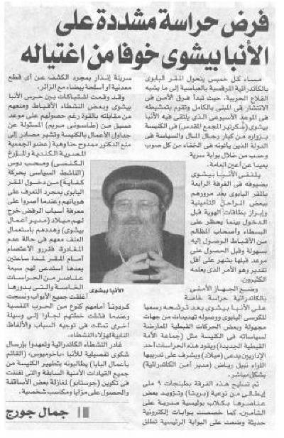 موسوعة تاريخ أقباط مصر - Coptic history بقلم عزت اندراوس شباب قبطي يحطم زجاج سيارة الأنبا بيشوي |