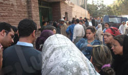 وكان قرابة 600 شخص من أبناء الديانة المسيحية قد احتشدوا صباح اليوم أمام مبني الخدمات التابع لطائفة الأقباط الأرثوذكس لليوم الثالث على التوالي،