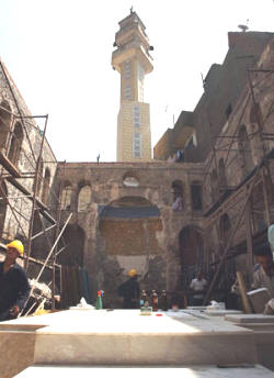 وبدأت التشديدات الأمنية منذ الصباح الباكر حيث تعرض جميع المواطنين للتفتيش فى شارع الموسكى، وفى جميع المنافذ المؤدية إلى درب محمود حيث يوجد المعبد،كما فرض حصار أمنى على سكان المنطقة المحيطة بالمعبد، والتى نصب حولها صوان كبير، واحتج عدد من سكان البنايات الملاصقة للمعبد على منعهم من الوصول إلى منازلهم، وكذلك أبنائهم العائدين من المدارس، وهو ما دفع رجال الأمن المتواجدين بكثافة فى المنطقة إلى السماح للسكان بالعودة إلى المنازل أو الخروج منها فى حراسة الأمن.