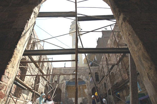 وتواجد حول المعبد عدد ضخم من القيادات الأمنية يتقدمهم رئيس المباحث، هذا فضلاً عن العشرات من المجندين، ورجال الأمن فى زى مدنى الذين ملأوا جميع الشوارع المؤدية إلى حارة اليهود. وخلت حارة اليهود تماماً من المارة، وأغلقت جميع المحال التجارية المكتظة عادة بالزبائن، وذلك بسبب التشديدات الأمنية من جهة، وذلك عكس شارع الموسكى وشارع المعز الذى ظلت فيه المحال التجارية مفتوحة، فى حين لم يكن هناك عدد كبير من الزبائن، هذا كما تواجد عدد من القناصة على أسطح المبانى المحيطة بالمعبد.