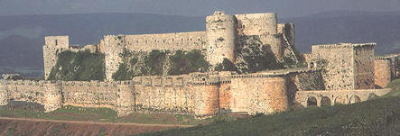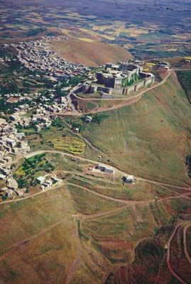 وفي بداية القرن الحادي عشر بدأ الأوروبيين بتجهيز حملات إلى منطقة بلاد الشام من أجل السيطرة على بيت المقدس تحت دعوة البابا أوربان. وبعد قدوم الصليبيين عام 1099 استولى على الحصن ريموند صنجيل ونهب محيطها من قرى ومزارع ثم استرجعها منه أمير حمص سنة 1102 وقام بعدها تانكرد صاحب أنطاكية عام 1110 بالاستيلاء عليها وفي 1144 قام ريموند الثاني أمير طرابلس بتسليمها إلى فرسان القديس يوحنا المعروفين بالإسبتارية أو فرسان المشفى، ومنذ ذلك الحين بدأ المكان يعرف باسم حصن الفرسان ( Krak des Chevaliers)، وقد أعاد الإسبتارية بناء الدفاعات الجديدة للقلعة، وقامو بترميمها بعد الزلزال الذي أصابها عام 1157.