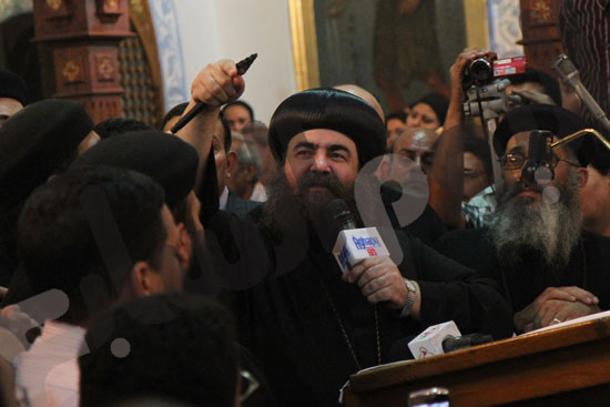 الأنبا يوأنس سكرتير البابا فى قداس الجنازة على أرواح شهداء كنيسة مارمينا بأمبابة
