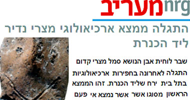 معاريف: اكتشاف آثار مصرية نادرة فى إسرائيل - جريدة اليوم السابع الأربعاء، 2 سبتمبر 2009 م كتب حاتم عطية كشفت صحيفة معاريف الإسرائيلية عن العثور مؤخراً على أثر مصرى نادر فى الحفريات الأثرية المتواجدة بمنطقة تل القمر القريبة من بحيرة طبرية التى احتلها الجيش الإسرائيلى خلال حرب 1967. وأوضحت الصحيفة أن الأثر المصرى الذى تم اكتشافه عبارة عن لوحة حجرية قديمة، تحمل رموزاً ونقوشاً مصرية قديمة، وتعد الأولى من نوعها الذى يتم اكتشافها فى هذا الموقع الأثرى، ولم يتم اكتشاف مثلها فى مصر. ونقلت الصحيفة رأى البرفيسور رافى جرينبيرج عالم الآثار فى جامعة تل أبيب الذى قال عن الأثر المصرى الذى تم اكتشافه، إنها لوحة حجرية تحمل شعارات ورموزا مصرية قديمة ترجع الى عهد السلالة الأولى التى كانت تعيش فى مصر عام 3000 قبل الميلاد، أو قبل ذلك التاريخ بقليل، وأضاف البرفيسور الإسرائيلى أن الاكتشاف الأثرى المصرى يعتبر نادراً، ويصعب العثور عليه فى خارج مصر أو حتى فى مصر نفسها. وأشار البرفيسور أن الرموز المنقوشة على اللوحة واضحة بشكل جيد لمن ينظر إليها، ويمكن المقارنة بين هذه الرموز وبين الرموز المتواجدة على القطع الأثرية الأخرى التى ترجع إلى عصر تأسيس النظام الملكى فى مصر القديمة، وهى الرموز التى أوضحت قبل ذلك أنه كان هناك علاقة قديمة بين منطقة وادى الأردن وبين الديوان الملكى فى مصر القديمة. لمعلوماتك.. --- * بحيرة طبريا: هى بحيرة حلوة المياه تقع بين منطقتى الجليل والجولان على الجزء الشمالى من مسار نهر الأردن. يبلغ طول سواحلها 53 كم وطولها 41 كم وعرضها 17 كم، ومساحتها تبلغ 166 كم2. --- * تسيطر إسرائيل على البحيرة التى تعتبر مصدر مياه الشرب الرئيسى لإسرائيل والأراضى الفلسطينية، و بعد احتلال الضفة الغربية وقطاع غزة من قبل إسرائيل فى حرب 1967 ربطت شركة المياه الإسرائيلية بعض المدن الفلسطينية إلى مسيل المياه ولكنها تقطع المياه فى بعض الأحيان توفيرا لها. |