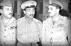 الصورة الجانبية : أعضاء محكمة الثورة حسن ابراهيم وأنور السادات وعبد اللطيف البغدادي رئيسا