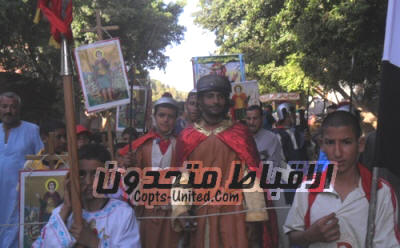بالصور.. أهالي قرية "البياضية" يحتفلون بعيد "مار مينا" ويرفعون صليب المنارة وسط غياب أمني الأقباط متحدون الجمعة ٢٢ يونيو ٢٠١٢ - كتبت- تريزة سمير احتفلت كنيسة "مار مينا" بقرية "البياضية" التابعة لمدينة "ملوي" بمحافظة "المنيا"، أمس الخميس، بعيد القديس "مار مينا العجايبي". وشهد الاحتفال رفع صليب أعلى منارة الكنيسة وسط زغاريد وغناء وتراتيل أهالي القرية، وطافوا يحملون الصلبان وصور "مار مينا" والبابا "شنودة". ومن جانبه، شرح القس "إريانوس"- كاهن الكنيسة- مراسم الاحتفال، مشيرًا إلى أن هذا الاحتفال جاء تتويجًا لنهضة استمرت خمسة عشر يومًا، وشهدت صلوات وقداسات يومية استعدادًا لعيد "مار مينا العجايبي". وأوضح كاهن الكنيسة أنهم انتقلوا أمس بعد صلاة القداس حاملين صور "مار مينا"، وقام بعض الشباب بارتداء ملابس حربية كالتي كان يرتديها القديس، وردد الشمامسة الألحان والتراتيل وهم يطوفون في أنحاء القرية بالكامل ليتبارك منها شعب الكنيسة. وأشار القس "إريانوس" إلى أن الكنيسة تحتفل بعيد "مار مينا" مرتين في العام، ولكن هذا الاحتفال جاء مختلفًا لأن فيه تم رفع صليب القبة في وسط حشد من أهالي القرية، لافتًا إلى غياب التواجد الأمن عن الاحتفال رغم إبلاغهم. ************************