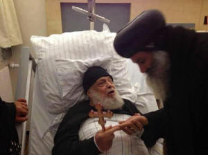مطران اسيوط الانبا ميخائيل وهو على فراش المرض فى أسيوط |