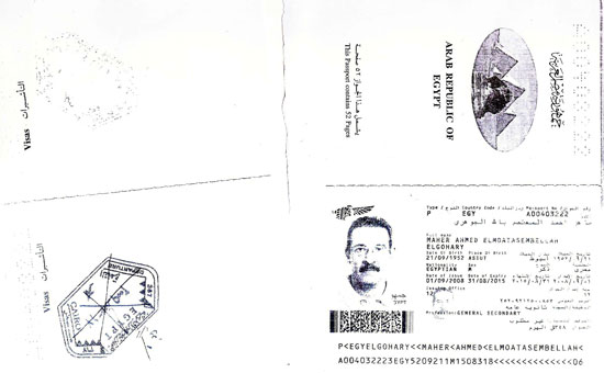 جواز سفر الجوهرى وموضح عليه ختم تأشيرة سفره ---------------->
