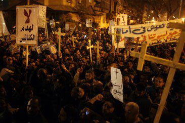 موسوعة تاريخ أقباط مصر - Coptic history بقلم المؤرخ / عزت اندراوس أقباط أسوان يتظاهرون وينددون بحرق المسلمين كنيسة الماريناب |