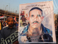 + الشهيد أيمن نصيف وهبه صورة الشهيد أيمن نصيف وهبة أحد شهداء ماسبيرو مرفوعة أثناء مسيرة تأبين الضحايا فى 11/11/2011م |