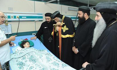 فى 23/10/2013م قام قداسة البابا تواضروس الثانى بزيارة مجمع مستشفيات المعادى للقوات المسلحة لتفقد مصابى كنيسة العذراء والملاك ميخائيل بالوراق والاطمئنان علي حالتهم الصحية بعد عظته الاسبوعية مباشرة والجدير بالذكر أن عدد المصابين الذين زارهم قداسة البابا 13 مصاب وقد تألم قداستة كثيراً جداً لحالة المصابين وقدم تعزياته لأسر المصابين الذين لهم شهداء وكان من ضمن المصابين اثنين من اخوتنا المسلمين : 1- عماد سيد عيد مفتاح 2- محمد ناصر عيسي كما زار قداسته احد مصابي الاحداث الارهابية في رفح المساعد اول/ ياسر جودة وأشاد قداسة البابا بمدير المستشفى والعاملين لدورهم الرائع فى رعاية المصابين واصطحب معه فى الزيارة الانبا يوحنا أسقف شمال الجيزة والقس انجيلوس اسحق والقس امونيوس عادل سكرتارية قداسته و كان في استقبال قداسته 1- السيد اللواء طبيب/ سعيد النجار مدير مجمع مستشفيات المعادي للقوات المسلحة 2- السيد اللواء ط/ عاطف امام مدير مستشفي المعادي 3- السيد اللواء ط/ هاني يسي استشاري جراحة المسالك البولية بمستشفي المعادي العسكري 4- السيد العميد ط/ اشرف عبد الراضي نائب مدير مجمع مستشفيات المعادي وقد حضر الزيارة المهندس / رأفت الخناجري والمهندس اشرف عجيب |
