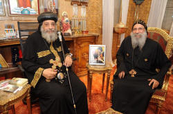| فى 23/10/2013م قال القس بولس حليم إن البابا تواضروس الثانى إستقبل الأب الدكتور ميشال جلخ أمين عام مجلس كنائس الشرق الأوسط بالمقر البابوى بالكاتدرائية المرقسية بالعباسية تأتي الزيارة في إطار تقديم التعازي للبابا في شهداء حادث كنيسة العذراء بالوراق ومناقشة أوضاع الأقباط في مصر وكان البابا تواضروس قد استقبل مساء أمس الثلاثاء المستشارة تهاني الجبالي مؤسس حركة الدفاع عن الجمهورية والدكتورة عايدة نصيف عضو الهيئة العليا لحزب المصريين الأحرار لتقديم التعازي في شهداء كنيسة العذراء |