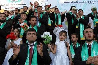 الطلاق آية 4 :[اللَّائِي يَئِسْنَ مِنَ الْمَحِيضِ مِن نِّسَائِكُمْ إِنِ ارْتَبْتُمْ فَعِدَّتُهُنَّ ثَلَاثَةُ أَشْهُرٍ وَاللَّائِي لَمْ يَحِضْنَ وَأُوْلَاتُ الْأَحْمَالِ أَجَلُهُنَّ أَن يَضَعْنَ حَمْلَهُنَّ وَمَن يَتَّقِ اللَّهَ يَجْعَل لَّهُ مِنْ أَمْرِهِ يُسْرًا ] وتفسير هذه الاية باللغة السهلة (تعريف العدة : هى الإنتظار مدة ثلاثة أشهر لإستبراء الرحم قبل الزواج) :1. انتظروا 3 شهور قبل الزواج من (الأرملة التى مات زوجها حديثاً أو المطلقة أو المرأة التي ارتفع عنها الحيض لكبر السن أو غيره ولم يرجَ رجوعه (وانقطعت دورتها الشهرية) حتى التأكد من عدم حملهن. 2. انتظروا 3 شهور قبل الزواج من َاللَّائِي لَمْ يَحِضْن { أى الزواج من الصغار اللاتي لم يأتهن الحيض بعد أو حتى البالغات اللاتي لم يأتهنّ الحيض بالكلية فعدتهنّ مثل عدة التي قبلها ثلاثة أشهر وعلى هذا تكون الواو في قوله تعالى } وَاللَّائِي { واو عطف على ما قبلها) 3. والصبر على الحامل حتى تولد ( النساء الحوامل فعدتهنّ أن يضعنّ الولد فتنتهي بذلك عدتها فاذا انتهت عدة المرأة جاز لها الزواج من رجل أخر) ومع تحياتنا للشيخ برهامى لرجولته وشجاعته فى توضيح شريعة الإسلام لنا !!! الصورة الجانبية زواج جماعي لحماس في غزة فى 1/8/2009م والعرائس بنات من سن 6 الي 9 سنوات اقام الاخوان الحماسيون في غزة حفل نكاح جماعي ل 450 مجاهد علي 450 طفلة صغيرة شرعية تحت سن العاشرة حسب اوامر الله اله الاسلام في سورة الطلاق آية 4 يمكنك مشاهدة الفيديو على اليو تيوب فى الإنترنت بكتابة عبارة "اكبر عرس جماعي في غزة " ونذكر أن المجلس القومى للمرأة طالب وزارة الداخلية والجهات المعنية بمحافظة مرسى مطروح بسرعة اتخاذ الإجراءات اللازمة لإعادة الطفلة سارة إسحاق عبد الملك 13 عاماً والطالبة بمدرسة الضبعة الإعدادية بنات إلى أهلها بعد اختطافها مفى 30/9/2012م الماضى أثناء ذهابها للمدرسة وذلك بناءً على الشكوى التى تقدم بها والد الطفلة للمجلس وأشار المجلس، فى بيان له أن والد الطفلة تقدم بشكوى للمجلس أوضح خلالها أن الطفلة تعرضت للخطف على يد شاب مسلم وقام بالزواج من الطفلة وقد حرر والد الطفلة محضراً رقم 904 بتاريخ 30/9/2012 بقسم شرطة الضبعة موجهاً الاتهام لهذا الشخص مطالبا المجلس بالتدخل وإعادة طفلته إليه وأعلن المجلس رفضه وإدانته لمسألة زواج الأطفال القصر خاصة أن القانون يجرم هذا الفعل ويعاقب من يقوم بارتكابه ومما يذكر أيضا أن الأنبا باخوميوس طلب من الرئيس مرسى بإرجاع الطفلة كما ذهب أهل الطفلة إلى وزير الداخلية لإرجاعها فقال لهم موضوع رد الطفلة فى يد الشيخ برهامى !!!!!!!!!!!!!!!!