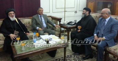 وأكد المحافظ أن الشعب المصري، عقب ثورة يناير، لن يقبل أية دعوات للتفرقة بين مواطن وآخر على أي أساس، وأن الإسلام يرفض التطرف ويدعو للوسطية والتسامح التي تمثل هدى ربانيًّا وتعليمًا سماويًّا! وقال الأنبا "بفنوتيوس" إن زيارة المحافظ وافتتاح الكنيسة يدلان على أنه لا يوجد تمييز فى هذا الوطن، وأكد أن مباني الكنيسة وتوابعها لا تهدف إلى الصلوات فقط، إنما تسعى لتقديم خدمات اجتماعية لكافة أبناء الوطن، منها وجود مركز لعلاج الأورام السرطانية. فيما قال القس "داوود ناشد"، وكيل مطرانية سمالوط، إن المصريين متكاتفون متماسكون يربطهم هذا الوطن. كما تفقد المحافظ ومطران سمالوط، مباني المطرانية والكنيسة التي تضم مبنى للمطرانية على مساحة 500 متر مقامة على دورين * * * *مطران سمالوط في زيارة لمحافظ المنيا لشكره علي افتتاح مبني المطرانية الجديد الأقباط متحدون السبت ٩ فبراير ٢٠١٣ - المنيا يوسف البباوي قدم وفد من مطرانية سمالوط برئاسة الأنبا بفنوتيوس مطران سمالوط والأنبا داود ناشد وكيل المطرانية الشكر للدكتور مصطفى كامل عيسى محافظ المنيا على مجهوداته بالمحافظة ومشاركته شعب المطرانية افتتاحات مباني الكنيسة والمطرانية الجديدة بسمالوط خلال الشهر الماضي. وقال الأنبا بفنوتيوس أن حضور المحافظ للافتتاح منح الشعور بالسعادة والطمأنينة لدى أبناء المطرانية فالزيارة أكبر تأكيد بأن المصريين سيظلوا متكاتفين ومتماسكين ويربطهم هذا الوطن ، وأنه الدولة ترعى تلك الوحدة وتداعم أواصر الحب والمودة التي ستستمر على مر التاريخ. وأكد المحافظ أن الوطن لن يقبل بأى دعوات للتفرقة بين المواطنين على أي أساس فجميعنا مصريين نسعى للنهوض بهذا الوطن وتحقيق أحلام. |