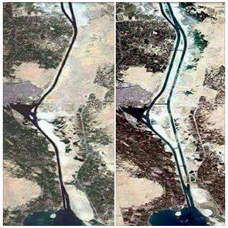 1956: إجتاحت بريطانيا وفرنسا وإسرائيل مصر لإعادة السيطرة علي القناة، رد عبد الناصر بإغراق كل السفن الـ 40 الموجودة في مجري القناة.