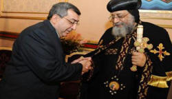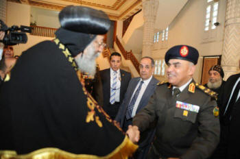 فى 31/3/2014م قام البابا تواضروس الثاني بابا الإسكندرية وبطريرك الكرازة المرقسية، باستقبال وزير الدفاع الفريق صدقي صبحي، صباح اليوم بالمقر البابوي بالكاتدرائية. وذلك لتلقي التعازي في وفاة والدته. جدير بالذكر أن اللقاء كان بحضور وفد من كبار قادة القوات المسلحة وضم كلاً من: اللواء محمد سعيد العصار مساعد وزير الدفاع، اللواء أركان حرب أحمد أبو الدهب رئيس هيئة التنظيم والإدارة، اللواء أركان حرب توحيد توفيق قائد المنطقة المركزية، اللواء محسن عبد النبي مدير إدارة الشئون المعنوية. |