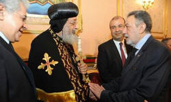 فى 31/3/2014م ترأس وزير الداخلية،وفداً من قيادات الشرطة ووزارة الداخلية، لتقديم العزاء للبابا تواضروس الثاني في وفاة والدته، بالكاتدرائية المرقسية الكبرى بالعباسية. وترأس الوزير وفدًا من اللواء وجيه صادق مساعد وزير الداخلية لقطاع الشرطة المتخصصة، واللواء أحمد حلمي عزب مساعد وزير الداخلية لقطاع الأمن، واللواء أسامة الصغير مساعد وزير الداخلية مدير أمن القاهرة، واللواء أبو بكر عبد الكريم مساعد وزير الداخلية لقطاع حقوق الإنسان، واللواء خالد ثروت مساعد وزير الداخلية رئيس قطاع الأمن الوطني، واللواء عبد الفتاح عثمان مدير الإدارة العامة للإعلام والعلاقات، والعقيد على سالم مدير إدارة المرسم بالإدارة العامة للإعلام والعلاقات، والضابط أحمد خالد المغربى الضابط بإدارة المراسم بالإدارة العامة للإعلام والعلاقات. يذكر أن والدة البابا قد انتقلت عن عالمنا يوم الجمعة الماضية وتم تشييع الجثمان من الكنيسة المرقسية في الإسكندرية وسط إجراءات أمنية مشددة، كما ترأس البابا طقوس الجنازة السبت الماضي. |