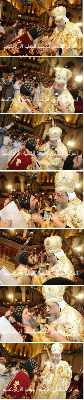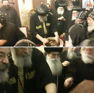 قام قداسة البابا تواضروس الثانى مساء يوم السبت 31 مايو 2014م بصلاة عشية سيامة الآباء الأساقفة وفيها : 1 - الأنبا ايساك الخوري ابسكوبوس خريج كلية العلوم التحق بدير السريان عام 1963 ترهبن عام 1964 وكان مساعدا للأنبا باخوميوس سيم اسقفا عام باسم الأنبا ايساك فى إيبارشية البحيرة 2- أبونا ارسانيوس الأبنوبي بكالوريوس تجارة التحق بالدير 1996 ترهبن 1999 سيم ياسم الأنبا بيموي أسقف للسويس 3- ابونا اسحق الأنبا بيشوي بكالوريوس العلوم التحق بالدير 1995 سيم باسم الأنبا اسحق مساعدا للانبا إبرام أسقف الفيوم 4-ابونا كاراس الأنبا بيشوي التحق بالدير 1992 ترهبن 1993 سيم باسم الأنبا كاراس أسقف عام القاهرة 4- ابونا شاروبيم البراموسي بكالوريوس طب التحق بالدير 1991 ترهبن 1995 سيم باسم الأنبا أنجيلوس أسقف عام القاهرة 5- ابونا مرقس افا مينا بكالوريوس تجارة التحق بالدير 1994 ترهبن عام 1997 سيم باسم الأنبا ماركوس أسقف عام القاهرة 7-ابونا بولا السينائي هندسة 91 كاهن متبتل 99 اول راهب يدخل دير موسي النبي بعد اعتراف الكنيسة الأرثوذكسية به سيم باسم الأنبا بافلي أسقف عام القاهرة