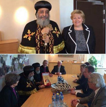 فى 21/6/2014 قداسة البابا تواضروس الثانى مع رئيس الوزراء النرويجي ووزير الخارجية |
