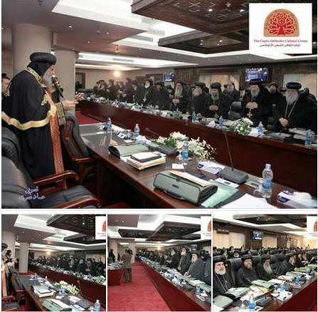 عقدت فى يوم الخميس الموافق 5 يونيو 2014م جلسة المجمع المقدس السنوية المعتادة برئاسة حضره صاحب الغبطه والقداسه البابا المعظم الانبا تواضروس الثانى بابا الاسكندرية و بطريرك الكرازة المرقسية و سكرتارية نيافة الحبر الجليل الانبا رافائيل سكرتير المجمع المقدس في حضور 97 عضو من أعضاء المجمع المقدس و ذلك فى القاعة الكبرى للمجمع المقدس (العلية) بالكاتدرائية المرقسية بالعباسية وذلك من الساعة العاشرة صباحا الى الساعة الثالثة عصرا و قد أخذت القرارت التالية بإجماع الحاضرين من أعضاء المجمع المقدس : 1- الموافقة علي تعديل المادة (56) من لائحة المجمع المقدس المادة (56) قبل التعديل تنص على ما يلى: "فى حالة خلو الكرسى يقوم القائم مقام بكل اختصاصات البابا البطريرك إلى حين سيامة بابا جديد فيما عدا سيامة الأساقفة ومن فى مستواهم." نص المادة بعد التعديل : " فى حالة خلو الكرسى يتولى القائم مقام البابا البطريرك جميع اختصاصات البابا البطريرك المقررة بمقتضى أحكام القوانين واللوائح العامة ولائحة المجمع المقدس ووفقاً للقواعد والتقاليد الكنسية إلى حين سيامة بابا جديد. ولا يجوز له رسامة آباء أساقفة إلا إذا استمر خلو الكرسي أكثر من ثلاث سنوات وبموافقة 80% من أعضاء المجمع على المبدأ وعلى المرشح للسيامة وذلك في حالات نياحة مطران أو أسقف إيبارشية وبما لا يزيد على 5% من أعضاء المجمع وقت خلو الكرسي ولا يجوز له إنشاء إيبارشيات جديدة أو تقسيم إيبارشيات قائمة أو سيامة أساقفة عامين " 2_ إعتماد تذكارات ظهورات السيدة العذراء وتسجيلها في كتب التاريخ الكنسي والاحتفالات المحليه في كنائسها : عيد ظهورها فى كنيسة العذراء بالزيتون 24 برمهات / 2 أبريل عيد ظهورها فـى كنيســة الشهيدة دميانة بابا دبلـو بشبـــرا مصر 25 مارس / 16 برمهات كنيسة القديس مارمرقس بأسيوط فى 12 مسرى / 18 أغسطس كنيسة القديسة العذراء بالوراق فى 1 كيهك / 10 & 11 ديسمبر 3- اعتماد ترتيب قراءات جديدة لعيد نياحة داود النبى 23 كيهك / 1 يناير 4- اعتماد عبارة "كريم انت ومبارك "بضم حرف الميم من كلمة كريم وضم حرف الكاف في كلمة مبارك 5- الاعتراف بدير الانبا مكاريوس السكندري بجبل القلالي ويقع في نطاق إيبارشية البحيرة وتوابعها 6- لا يجوز لاي كاهن سيم علي كنيسة فبطية أرثوذكسية في مصر ان يقيم خارج مصر بعيداً عن كنيسته أو الإيبارشية التى سيم عليها إلا بموافقة أسقفه و قداسة البابا البطريرك وموافقة أسقف الايبارشية التي سيتعين فيها ومن يخالف يقع تحت طائلة العقوبة الكنسية ونفس المبدأ يطبق على الانتقال من دوله الي أخري خارج مصر 7- لا يجوز أن يرسل الأب الكاهن زوجته لتقيم بعيداًعن مكان خدمته و خاصة أن تقيم فى بلاد المهجر و تتركه فى مكان خدمته مما يهدد كيان الأسرة الخاصة به . و أى إستثناء لهذا القرار ينبغى أن يكون بموافقة الرئاسة الكنسية . 8-تشكيل لجان فرعية جديدة منبثقة من لجنة شئون المهجر وهي: لجنة المعاهد اللاهوتية فى المهجر و مقررها أنبا سوريال و لجنة العمـل الكـرازى فـى المهجــر و مقررهـا أنبـا دافيد 10- لا يتم تبادل أو نقل جزء من رفات القديسين الا عن طريق الآباء الأساقفة بوثائق رسمية مختومة بخاتم الايبارشية 11 - البدء في مشروع هيكلة لجان الأسرة ومجالس الأحوال الشخصية علي مستوي الكرازة المرقسية |