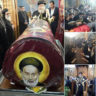 فى 1/6/2014م ترأس البابا تواضروس الثاني، بابا الإسكندرية بطريرك الكرازة المرقسية، اليوم، الأحد، قداس عيد دخول المسيح إلى أرض مصر، والذي تم فيه سيامة سبعة من الأساقفة. وخلال القداس ألقى البابا كلمة عن دخول المسيح إلى أرض مصر، موضحا، أن دخول المسيح لأرض مصر له ثلاث نعم متميزة، أولها أنه وطن غالي حيث صارت لمصر ميزة منفردة "مبارك شعبي مصر" وجاءت العائلة المقدسة لمصر وتباركت بها وصارت مصر أرض مقدسة. وأضاف البابا، أن الكنيسة غالية، حيث أن كنيستنا القبطية تأسست منذ العهد القديم بنبوة قبل الميلاد بعدة قرون" في ذلك اليوم يكون مذبح في وسط أرض مصر " وجاء مار مرقس إلي مصر وكرز في الديار المصرية، كما أن لنا تاريخ وتراث تراث غالي، وهي الميزة الثالثة. وأوضح البابا أنه لنا كبار المعلمين في اللاهوت وكتاباتهم وأقوالهم وسيرهم لنا شهداء في كل عصر وفي كل جيل و في كل زمان قدموا دماءهم دفاعا عن العقيدة، ولنا رهبنه في صعيد مصر تأسست علي يد الأنبا أنطونيوس و صارت الرهبنة هي عطية الله للمسيحية في مصر ومن مصر انطلقت الرهبنة للعالم كله. وتطرق البابا إلى الحديث عن مسؤولية الأسقف ومنها التعليمية، فلابد أن يكون معلم مشبع لشعبه ويغذيهم من الكتاب المقدس وأباء الكنيسة وأقوالهم ومن قوانين المجامع، والمسئولية التقديسية، حيث يقدس الأسرار ويلد أناس جدد، ويمارس الأسرار بوعي مع شعبه، وهو مسئول أن يجعل كل من يخدمه في طريق القداسة. وأضاف البابا أن هناك المسئولية التكريسية، حيث تكريس الكنائس والمذابح و أدوات الخدمة وتكريس النفوس، وفوق كل هذا أن يكون آب بكل ما تعنيه الكلمة من معنى، فالعالم الآن يحتاج إلي الأبوة التي هي شئ غالي في كنيستنا القبطية الأرثوذكسية فلابد أن يعيش الأبوة مع الكهنة والاراخنة والشمامسة وكل الشعب، والأبوة أهم ما فيها القلب المتسع الذي يحوي كل إنسان. *********** قام البابا تاوضروس بسيامة الراهب شاروبيم البراموسى أسقفا عاما والراهب مرقس أفا مينا أسقفا عاما والراهب كاراس الأنبا بيشوى أسقفا عاما والراهب بولا السيناوى أسقفا عاما والراهب أرسانيوس الأبنوبى أسقفا لإيبارشية السويس والراهب إسحاق الأنبا بيشوى أسقفا عاما مساعدا للأنبا إبرام أسقف الفيوم وذلك بناء على طلبه كما يقوم البابا بترقية "الخورى بسكابوس الأنبا أيساك" إلى أسقف عام على دير الأنبا مكاريوس بالبحيرة