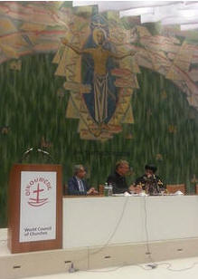 فى 1/9/2014م قام البابا تواضروس الثاني بزيارة مجلس الكنائس العالمي في جينيف بناء علي دعوة سكرتير المجلس. وقد رافقه الأنبا لوقا أسقف عام فرنسا و الجزء الناطق بالفرنسية في سويسرا والأنبا كيرلس أسقف ميلانو والنائب البابوي لأوروبا والقس انجيلوس اسحق سكرتارية قداسة البابا والقس بولس حليم المتحدث الرسمي باسم الكنيسة القبطية الأرثوذكسية وبعض كهنة كنيستنا في جينيف بسويسرا وقد كان في استقبال البابا عند زيارته: القس الدكتور Fykse Tveit الأمين العام لمجلس الكنائس العالمي والأب الأستاذ الدكتور إيوان الأمين العام المساعد مدير المعهد المسكوني بوسيه والقس الدكتور Hielke الأمين العام المساعد كما حضر أيضا من الاتحاد اللوثري العالمي القس الدكتور Kaisamari Hintikka مساعد الأمين العام للشؤون المسكونية والدكتور ستيفن براون (يمثلون الدكتور Stückelberger الأمين العام Globethics.net) وحضر من اتحاد الطلاب المسيحي العالمي السيدة كريستين هوسيل، الأمين العام وحضر أيضا عدد من الجمعية المسيحية للشابات وبطريركية موسكو. |