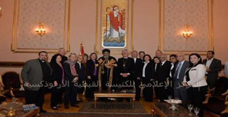 فى 7/ 12/ 2014م استقبل البابا تواضروس الثاني بابا الإسكندرية وبطريرك الكرازة المرقسية، اليوم الأحد، الأسقف "هاينريش بيدفورد ـ شتروهم" الرئيس العام للكنيسة الإنجيليكانية الألمانية والوفد المرافق له، وذلك بالمقر البابوي بالكاتدرائية المرقسية بالعباسية. وكان الوفد الألماني قد جاء إلى لمصر في جولة يزور خلالها عدة كنائس مصرية على رأسها الكنيسة القبطية الأرثوذكسية بهدف التعارف و زيادة التواصل. وقد رحب البابا بالوفد الألماني وتحدث عن الكنيسة القبطية وأنها كنيسة عريقة، ومنها خرجت أول رهبنة في العالم عن طريق الأنبا أنطونيوس أب الرهبان وبها أول دير والذي يحمل اسمه. كما أشار إلى الوحدة بين الكنائس مؤكدًا أنها تأتي من خلال الصلوات والحوارات والمحبة. وبسؤاله حول طبيعة علاقة المصريين، قال البابا أن الكنيسة في مصر محمية بربنا أولاً وبإخوتنا المصريين ثانيًا. وكان الوفد الألماني قد زار منطقة جامعي القمامة حيث تعرفوا على بعض الخدمات الإجتماعية التي تقدمها الكنيسة وأبدوا إعجابهم بمشروع محو الأمية وبفرص العمل التي توفرها هذه الخدمات. |