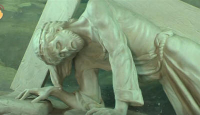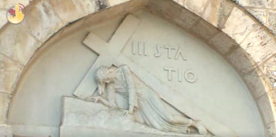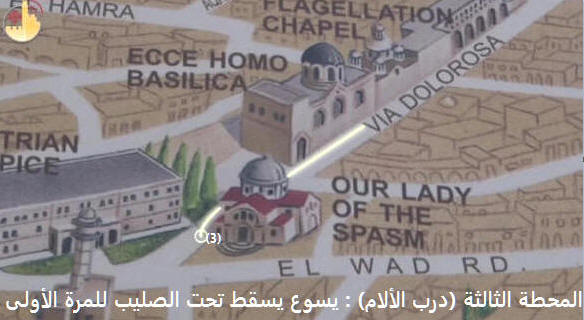 المرحلة الثالثة فى طريق الألام الذى مر فيه السيد المسيح بحراسة الجنود الرومان فى اورشليم القدس وفيه أحداث حدثت تركت ذكرى ليحتفل بها المسيحيين كل سنة : يسوع يقع تحت الصليب
