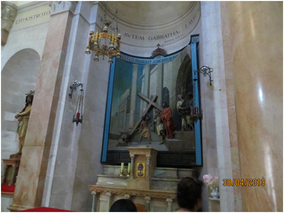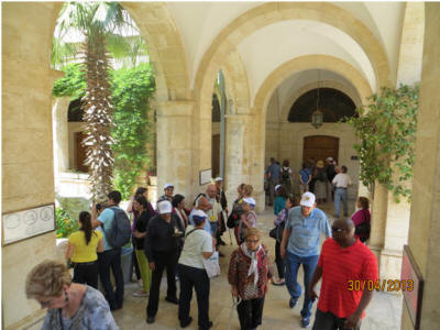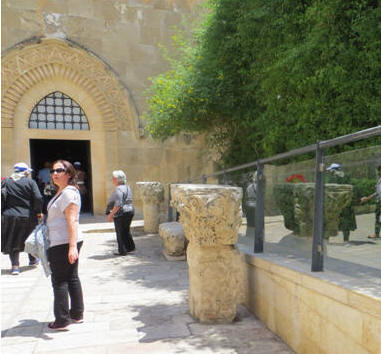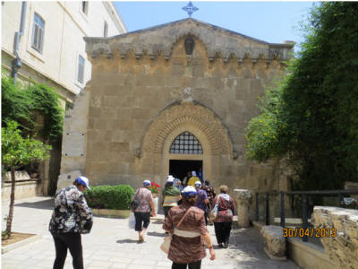هذا الفوج الذى زار الأراضى المقدسة يدخلون كنيسة الحكم على يسوع ولكن الداخل إلى دير الفرنسيسكان سيجد فى الوسط كنيسة الحكم ولليمين كنيسة الجلد ملاحظة : المرحلة الثانية ليست فى داخل الكنيسة ولكنها على الحائط الخارجى |