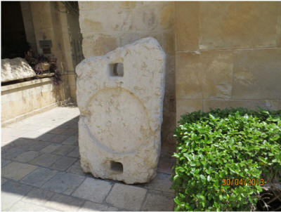 هذا الحجر مرسوم عليه اللعبة التى لعبها الجنود الرومان عندما ألقوا القرعة على ثياب السيد المسيح الحجر موجود فى أرضية دار الولاية الذى أصبح كنيسة دير حبس المسيح التابع للرهبنة الفرنسيسكانية وهذه تتبع المرحلة العاشرة وهذا الحجر وجد فى دار الولاية لعله حجر آخر أو أنهم رسموا الشكل على الأرض تحت الصليب (يو19: 23- 24) ثم ان العسكر لما كانوا قد صلبوا يسوع اخذوا ثيابه وجعلوها اربعة اقسام لكل عسكري قسما.واخذوا القميص ايضا.وكان القميص بغير خياطة منسوجا كله من فوق. 24 فقال بعضهم لبعض لا نشقه بل نقترع عليه لمن يكون.ليتم الكتاب القائل اقتسموا ثيابي بينهم وعلى لباسي القوا قرعة.هذا فعله العسكر |