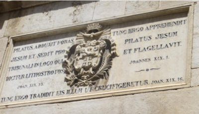 ويعتقد معظم المؤرخين أن ذلك الوالي كان يقيم في مكان ما، في البقعة التي قامت عليها فيما بعد مدرسة الروضة ومدرسة راهبات صهيون وما بينهما من بقاع، وأنه هنا تم تتويج المسيح بإكليل من الشوك.تبدأ من مقر الوالي تيطس الذي أصدر منه حكم الصلب على السيد المسيح، ويعتقد معظم المؤرخين أن هذا المقر كان يوجد في مكان ما في البقعة التي تقوم عليها الآن مدرسة الروضة ومدرسة راهبات صهيون وما بينهما، وأنه هناك تتم تتويج السيد المسيح بإكليل من الشوك. |