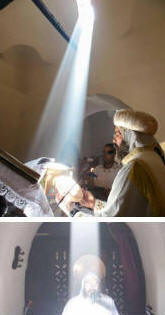 Home Up أيبارشية الزقازيق ومنيا القمح دير الملاك ميخائيل الاثرى بكفر الدير كنيسة الأنبا بشاى والأنبا بطرس - الزقازيق | | دير الملاك ميخائيل الاثرى بكفر الدير مركز منيا القمح الشرقية اباء الكنيسة القمص عيد السيد المتنيح القمص شنودة القس ويصا | ظاهرة غريبة فى كنيسة تاريخية بمركز منيا القمح في أخبار الشرقية, سلايد, 4/5/2015 تقرير | سامح المصري , مازن فايز شهدت كنيسة ميخائيل بكفر الدير بمدينة «منيا القمح» ظاهرة فلكية غريبة حيث تتعامد الشمس على المذبح والذبيحة اثناء قداس عيد الملاك وذلك في حضور الدكتور مسلم شلتوت رئيس قسم بحوث الشمس بمرصد حلوان , والدكتورة ميرفت صليب مدير عام مكتب رئيس المشروعات بالاثار , و الدكتور عاطف نجيب ولفيف من الاساتذه , حيث تتكرر الظاهره 3 مرات من كل عام وتحدث الظاهره القادمة 19 يونيو المقبل حيث يعد دير «ميخائيل» من المبانى الأثرية التى تم أنشائها فى القرن الرابع الميلادي , كما تم أكتشاف هذة الظاهرة فى 19/6/2014م أثناء ترميم الكنيسة منذ عام تزامناً مع عيد مار جرجس - وسقط شعاع الشمس على مذبح الكنيسة فى 1/5/2015م فى عيد إستشهاده وكان شعاع الشمس الذى ينير مذبح مار جرجس من ناحية الجنوب . وشعاع الشمس على مذبح الملاك ميخائيل فى إتجاه الشرق وشعاع الشمس على مذبح العذراء والذى لم يتم رصده حتى الآن وسيتم رصده فى شهر 8 من ناحية الشمال ويكون بهذه الإتجاهات يكون أشعة الشمس الساقطة على المذابح على هيئة صليب - وهذا راجع إلى أن الفنان القبطى الذى قام ببناء هذه الكنيسة فى القرن الرابع الميلادى أنه لم يكن مهندسا بارعا فقط ولكنه كان عالم فلكى نابغة ودقيق للغاية | أيقونات أثرية بالكنيسة  | يقونات أثرية بالكنيسة | أقباط الشرقية تحتفل بتعامد أشعة الشمس على مذبح الملاك ميخائيل فى عيده.. الصدفة تكشف الظاهرة الفلكية بكنيسة كفر الدير بعد ألف عام من حجبها..والأشعة تتسلط على أثر الملاك ميخائيل ومار جرجس تعامد الشمس على مذبح مارجرجس بكفر الدير بالشرقية مصرس يوم 03 - 05 - 2017 سناء فاروق كل سنة على التوال ى تتعامد الشمس على مذبح مارجرجس بكفر الدير بالشرقية