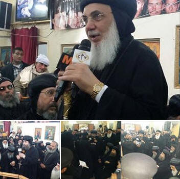 الإثنين 16 فبراير 2015 قيادات من عدة كنائس .. استقبل قداسة البابا تواضروس الثاني منذ قليل قيادات عدة كنائس للتعزية في الشهداء ، حيث حضر: المطران عادل زكى مطران الكاثوليك اللاتين جورج بكر مطران الموارنة جورج شيحان مطران الموارنه الكاثوليك المطران فيليب نجم الكنيسة الكلدانية سياده الارشمندت بولس فريط راعى كاتدرائية القيامه للروم الكاثوليك المطران يوحنا قلته النائب البطريركى للأقباط الكاثوليك المطران منير حنا الكنيسة الإنجليكانية المطران أسود مطران الأرمن الأرثوذكس بمصر وافريقيا الأب كابريل الأرمن الارثوذكس الاب بطرس دانيال مدير المركز الكاثوليكي للسنيما جورج شيحان مطران الموارنه الكاثوليك