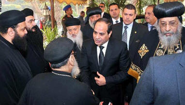 فى الإثنين 16 فبراير 2015 وزير الدفاع وقادة الجيش في الكاتدرائية للتعزية .. قام الفريق أول صدقي صبحي وزير الدفاع يرافقه وفد عسكري رئيس الأركان الفريق محمود حجازي والفريق عبد المنعم التراس والفريق أسامة الجندي والفريق لويس المصري والفريق أسامة عسكر واللواء محمد سعيد العصار واللواء توحيد توفيق واللواء سيد ابو الفضل بزيارة الكاتدرائية منذ قليل لتعزية قداسة البابا تواضروس في شهداء مصر والكنيسة الذين قتلوا على يد داعش بليبيا .. أكد الوزير أنه لن يستطيع أحد أن يخلق أو يمزق النسيج المصري الواحد ، مقدما تعزياته باسم الجيش المصري كله ، في حين أشار قداسة البابا تواضروس لأن مصر طوال تاريخها تؤكد أنها دولة عريقة وأصيلة بشعبها الأبي. |