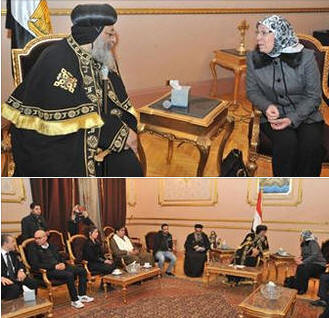 الإثنين 16 فبراير 2015 العشري وبدر يقدمون التعزية لقداسة البابا .. استقبل قداسة البابا تواضروس الثاني بالمقر البابوي وزير القوى العاملة الدكتورة ناهد العشري والسيد محمود بدر ، اللذان قدما التعزية لقداسته في شهدائنا الابرار |