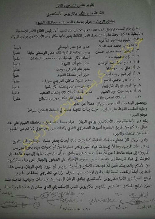 موسوعة تاريخ أقباط مصر - Coptic history بقلم المؤرخ / عزت اندراوس تقرير علمى من وزارة الآثار لتسجيل اثار دير الأنبا مكاريوس بوادى الريان |