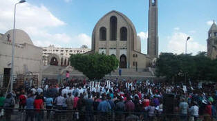 الأقباط يتجمعون حول كنيسة القديس الأنبا رويس (فريج) الذى تنيح في