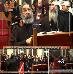 | 2016/1/13: (1) بسبب اعتراض المسلمون على صلاه عيد الميلاد باحد المنازل بسبب عدم وجود كنيسه جلسة صلح عرفيه بين الأقباط والمسلمين بقريتي سوداه ومحجوب بالمنيا (2) لظروف امنيه إلغاء زيارة البابا تواضروس لكنيسة ماريوحنا بالضبعيه بالاقصر. (3)حسم مسودة قانون"الأحوال الشخصية" لغير المسلمين فبرايرالمقبل.. مصادر: البابا يجتمع برؤساء الكنائس الخمس لمناقشة القانون.. واتجاه لتخصيص فصل لكل طائفة.. وتضمين مواد مشتركة للخطبة وتعريف الزواج فى المسيحية. (4)قداسه البابا تواضروس يشهد إحتفالة كاتدرائية كنيسه السيده العذراء بالاقصر بمرور 107 عام علي إنشائها (5)مستشار الكنيسه القانونى منصف سليمان:لا يوجد زواج مدنى للمسيحيين (6)الأنبا دانيال أسقف المعادى ورئيس المجلس الاكليركى للقاهرة:الحكم بزواج مدني لزوجان مسيحيان مخالف (7) الأنبا بيمن أسقف نقادة وقوص:السيسي حدد يناير المقبل موعدا للانتهاء من بناء وترميم الكنائس المتبقية ,الجيش يبدأ في أعمال البناء والترميم الأسبوع المقبل. |