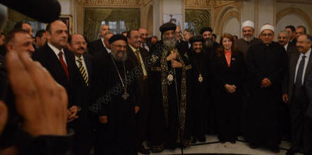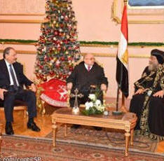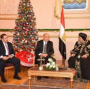 اﻷربعاء 6 يناير 2015 رئيس الوزراء ووزير الاستثمار في الكاتدرائية للتهنئة بعيد الميلاد. لتقديم التهنئة بعيد الميلاد المجيد وصل إلى الكاتدرائية المرقسية بالعباسية منذ قليل رئيس الوزراء المهندس شريف إسماعيل ووزير الاستثمار السيد أشرف عبد التواب سالمان ، استقبلهما قداسة البابا ودار حديث اتسم المودة والمحبة تمنى فيه السيد رئيس الوزراء الخير والسعادة للجميع وأكد قداسة البابا على تثمينه لجهود المسئولين في تحقيق امال وطموحات الشعب المصري. |