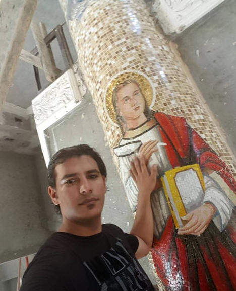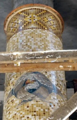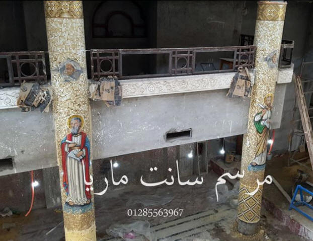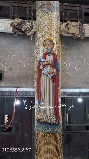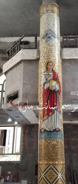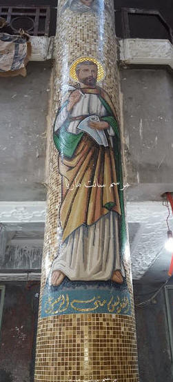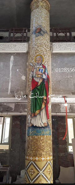 اجمل ماقدمه مرسم سانت ماريا من اعمال موزاييك بكنيسة العذراء مريم دكرنيس المنصورة اعمدة الكنيسة الاربعة عليهم البشائر الاربعة متى مرقس لوقا يوحنا من الموزاييك من اعمال الفنان مجدى مريد
