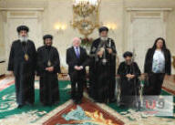 فى 18/5/2017 م استقبل اليوم الخميس الرئيس الأيرلندي مايكل هيجينز البابا تواضروس الثانى بقصر الرئاسة وحضرت سها الجندي سفيرة مصر لدى أيرلندا اللقاء، الذي تطرق إلى الكثير من القضايا، ذات الاهتمام المشترك ويواصل البابا تواضروس، زيارته الرعوية للمملكة المتحدة التي تستغرق أسبوعين والتي بدأها الجمعة قبل الماضية، رافقه خلالها الأنبا مقار أسقف مراكز الشرقية ومدينة العاشر من رمضان والأنبا بافلي الأسقف العام لكنائس قطاع المنتزه والمشرف على خدمة الشباب بالإسكندرية والقس أنجيلوس إسحق سكرتير البابا. |