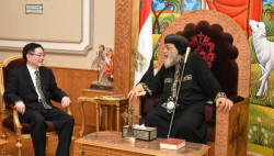 فى 31/5/2017م قداسة البابا يستقبل وزير شئون الأديان لدولة الصين استقبل قداسة البابا تواضروس الثاني، صباح اليوم بالمقر البابوي بالكاتدرائية المرقسية بالعباسية السيد وينج زيوان وزير شئون الأديان لدولة الصين، يرافقه سونج آي كوه سفيرها في مصر. تأتي زيارة الوزير الصيني للكاتدرائية في إطار زيارته الحالية للقاهرة. |
