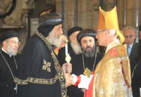 فى 13/5/2017م البابا تواضروس الثاني يلتقي رئيس أساقفة كانتربري "جاستن ويلبي" بحضور اللقاء السفير المصرى ناصر كامل، والأنبا أنجيلوس، الأسقف العام، حيث كان الاستقبال في كنيسة وست منستر آبى، وهى كنيسة العائلة المالكة البريطانية، ويدفن فيها ملوك وعظماء بريطانيا مثل ونستون تشرشل وغيره من الملوك والملكات.وذلك خلال زيارة قداسته الحالية لإنجلترا - كانت رحلة البابا خارج مصر قد بدأت بساعات قليلة فصلت بين لقاء البابا تواضروس الثاني والبابا فرنسيس الأول بابا الفاتيكان وقد تسبب سفر البابا فى إعتقاد البعض بأنه هرب للخارج بعد توقيع بيان المعمودية. المشاركة في مؤتمر كهنة أوروبا ففى صباح السبت 29/4/2017م غادر البابا تواضروس إلى إيطاليا للمشاركة في مؤتمر كهنة أوروبا والذي تقام فعالياته في ضيافة إيبارشية ميلانو ورافقه في هذه الزيارة الأنبا مقار أسقف مراكز الشرقية ومدينة العاشر من رمضان والأنبا بافلي الأسقف العام لكنائس قطاع المنتزه والمشرف على خدمة الشباب بالأسكندرية والقس أنجيلوس إسحق سكرتير قداسته من إيطاليا إلى بريطانيا من إيطاليا توجه البابا تواضروس إلى بريطانيا في زيارة رعوية استمرت من الجمعة الماضي، حتى الآن، وخلالها التقى الملكة اليزابيث الثانية وقد حضر اللقاء جناب الاسقف دافيد كونور عميد ويندسور. رأي السفير البريطاني ووصف السفير جون كاسن سفير بريطانيا بالقاهرة اللقاء بأنه "تاريخي"، وقال - في تغريدة له - "الملكة الـ٦٦ على مدار ١٥٠٠ سنة تستقبل بابا مصر ال ١١٨ خلال ٢٠٠٠ سنة.. طرفان ذو حكمة وخبرة كبيرة في التعايش والاستمرارية في عالم متغير". زيارات رعوية والتقى البابا في بريطانيا بعدد كبير من رعيته، وأكد خلال هذه اللقاءات البيان الصادر عن الكنيستين الأرثوذكسة والكاثوليكية أثناء زيارة بابا فرنسيس بابا الفاتيكان الأسبوع الماضي إلى مصر بشأن سر "المعمودية"، لا يعد اعترفا، ولكنه سعي للوحدة، مؤكدًا: لابد أن يكون لدينا حوار مع جميع الكنائس ولا نخاصم أحدًا وهذا ما علمتنا المسيحية". مع رئيس أساقفة كانتربري هذا، وقد التقى اليوم، البابا تواضروس الثاني مع رئيس أساقفة كانتربرى |