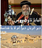 لمنصبه بشروط ثم بعد أن سافروا لأستراليا مسح الأتبا يسطس أسقف دير الأنبا أنطونيوس هذه الشروط بأستيكة وألغاها والأنبا يسطس رئيس الدير الذى ترهب فيه الأنبا دانييل بإسم متاؤس وهذا فى حد ذاته دليل على الشللية الموجودة فى المجمع وصدقت الأمثلة المصرية التى تقول .. " اللى مالوش ضهر ينضرب على بطنه .. ويا بخت من كان المشير خاله " .. إن ما قاله البابا فى إجتماع الشطة يشبه حكايات أبله فضيلة التى كانت تقولها للأطفال قبل النوم .. وأستمر يقول فلان قال 140 ألف جنيه وده مبلغ بسيط لهذا المنصب والثانى قال 110 ألف جنيه وألأثنين تضاربوا فى قولهم وطبعا أستدرج الأطفال الذين يسمعونه فأبرأ البابا دانييل من تهمه السيمونية بأى كلام ومسح عقل الأطفال الحاضرين الذى يكلمهم فى هذا الإجتماع السرى ولم يلاحظ أحدا من الحاضرين الوذعيين أيضا أن البابا قذكر المبلغ بالجنيه ولم يحدد هل هو جنيه مصرى أم جنيه استرلينى؟ ونحيط علم القراء ان منصب الأسقف فى عصر البابا القبطى يوساب كان يباع ب 5000 جنيه .. يا بابا لم يقل أحدا على الإطلاق هذه المبالغ التى تذكرها عن فلان وعلان لم يقولها أحد لو كنت صادقا لذكرت اسماؤهم فالعهده على الراوى فى هذه المقالة ذكرنا اسماء الشهود الأربعة والجميع فى سيدنى يعرف أن المبلغ المدفوع هو 180 ألف جنيه أسترلينــــى أى ما يعادل وقتها 240 ألف دولار إسترالى ولم يذكر البابا أنه بفمه قال فى هذه المحادثات أن المبلغ الذى دفع وقال بفمه أنه 180 ألف ج أسترلينى وشهد عليه أربعة أراخنه فى مستند رسمى موجود على الإنترنت .. هذا التصريح اللوذعى السرى الحراق من الشطة من البابا تاوضروس الذى يشبه حكايات الأطفال لا يصدقها حتى الأطفال ونتسائل عن عمر وثقافة الذين حضر إجتماع الشطة السرى الباباوى وكنا نود أن نراهم وخاصة السيدة التى سمعنا صوتها صائحة تقول .. الشطــــــــــة يا سيدنــــــــا وبكلمتها إشتهر إجتماع البابا السرى بأنه إجتماع الشطة البابوى