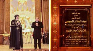 فى 6/1/ 2019م الإحتفال بعيد الميلاد المجيد وإفتتاح كاتدرائية ميلاد المسيح بالعاصمة الإدارية الجديدة بحضور الرئيس/ عبد الفتاح السيسى رئيس الجمهورية والقائد الأعلى للقوات المسلحة المصرية وقداسة البابا المُعظم/ البابا الأنبا تواضروس الثانى بابا الإسكندرية وبطريرك الكرازة المرقسية