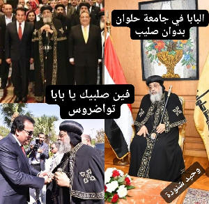 فى 1/10/2019م أين صليبك يا قداسة البابا تواضروس .. أقامت جامعة حلوان حفل تكريم لقداسة البابا تواضروس الثاني، بابا الإسكندرية وبطريرك الكرازة المرقسية، بحضور وزير التعليم العالي الدكتور خالد عبد الغفار والدكتور ماجد نجم رئيس الجامعة ونوابه وعمداء الكليات وعدد كبير من الطلاب ويلقي قداسة البابا محاضرة بعنوان: "في حب مصر" ومن المنتظر، أن توقع الجامعة بروتوكول تعاون مع الكنيسة القبطية خلال هذه الزيارة يرافق قداسة البابا، وفد كنسي يتكون من: نيافة الأنبا دانيال أسقف المعادي وسكرتير المجمع المقدس، والأنبا ميخائيل الأسقف العام لكنائس قطاع حدائق القبة، والقس كيرلس بشرى سكرتير قداسة البابا، والقس بولس حليم المتحدث الرسمي باسم الكنيسة القبطية الأرثوذكسية ود إسحق عجبان عميد معهد الدراسات القبطية ووكيل المعهد ود عادل فخري و بربارة سليمان مدير المكتب البابوي للمشروعات والعلاقات.