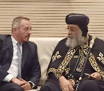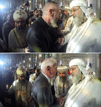 الأحد ١٣ أكتوبر ٢٠١٩م...أحد المسؤولين الفرنسيين المحليين يصافح البابا عقب زيارته لكنيسة العذراء والملاك بدرافي لتهنئة قداسته بتدشينها اليوم وقام أيضا بـ تدشين معمودية كنيسة العذراء والملاك بدرافي |